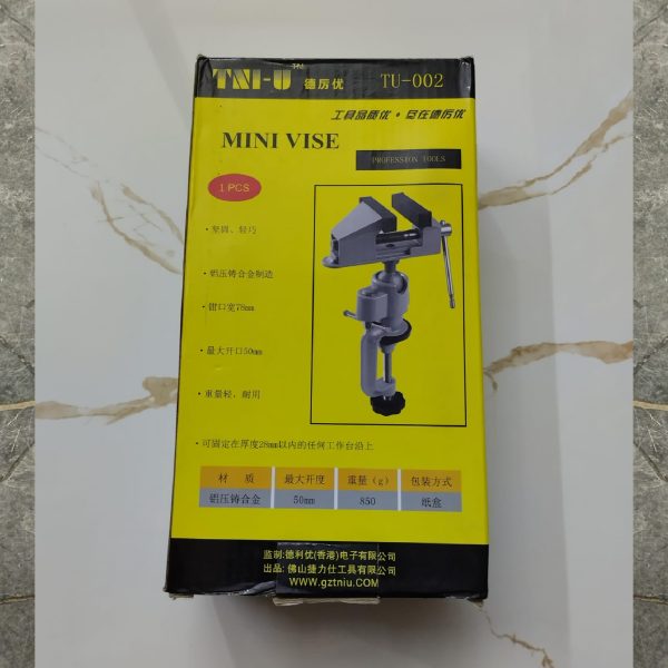 The TNI-U TU-002 Vice is a solid, heavy-duty tool designed for securely clamping workpieces during a variety of tasks such as cutting, filing, drilling, and assembly. Built with industrial-strength cast iron, this vice ensures long-lasting performance, providing a stable grip on materials for professionals and DIY enthusiasts alike. Its rotating base and easy-to-operate jaws make it a versatile and essential tool in workshops and garages.